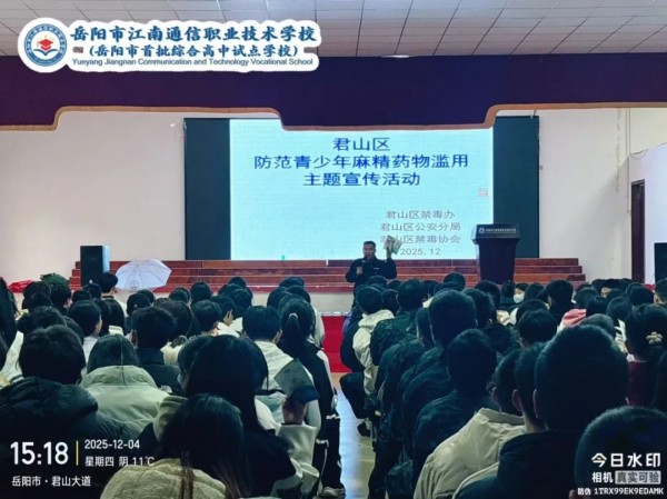 為切實加強青少年毒品預防教育,提升學生識毒、防毒、拒毒意識與能力,12月4日,君山區(qū)禁毒辦攜手君山區(qū)公安分局禁毒大隊、君山區(qū)禁毒協(xié)會,共同走岳陽市江南學校開展主題鮮明、形式多樣的禁毒宣傳活動,為全校師生筑起一道堅實的“無毒”青春防線。
